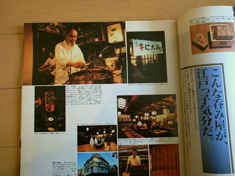 記憶のどこかに残っていたページでしたので、あのときの夢よ再び、とばかりに、早や、頭の中は煮込みでいっぱい。 そんな悶々としている最中、酒好きのお客さんが夕方フラリとやってきたのですから、もうキマリです。 「よしっ、行こう!」と傾きかけた陽のなかを一路門前仲町まで。