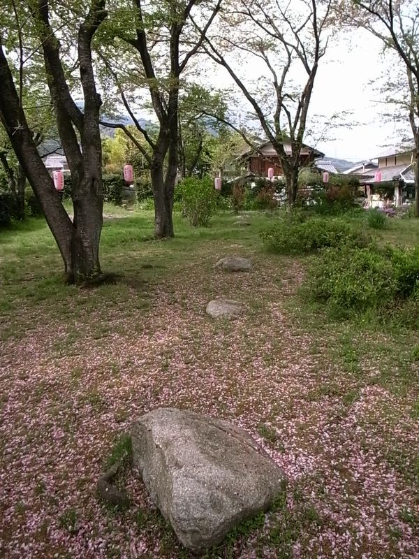 幾つかの礎石を残すだけで、あとは公園になっていまして、 終わったばかりの桜祭りのボンボリが又妙に哀愁をおび、 すっかり気落ちしてしまいました。