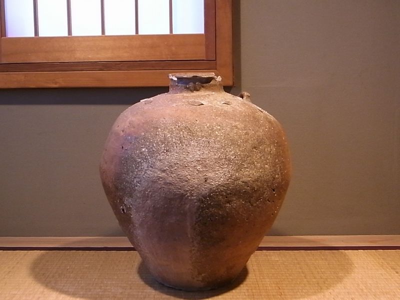 *信楽大壺 信楽はあまり好きではありませんが、これには一目惚れ。 赤くない肌、緑のビードロでない釉。あぁ天邪鬼な私にぴったり。 肩の張りは完璧。めずらしい耳付で京都の近藤金吾さんの箱に納まっています。 高さ45センチ