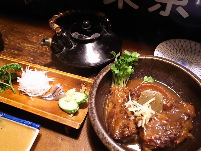 定番のきびなごのあとは、黒豚をじっくり煮込んだ<とんこつ>や 衣をつけ揚げた<げんこつ>などの肉料理。 普段呑む時はほとんど食べない系統ですが、 どれも美味しい!そしてあまい。