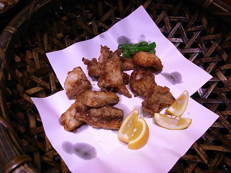 ポン酢に肝を混ぜて食するのが地元流とのことで、なんとも贅沢。 唐揚げも東京で食べるものとはまるで別物。