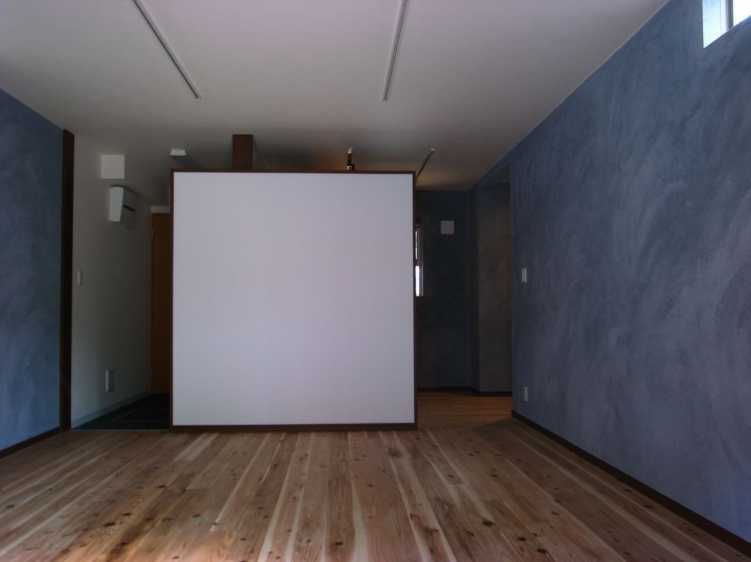 無垢板を貼り、壁は墨で色付けした材を左官で塗りました。