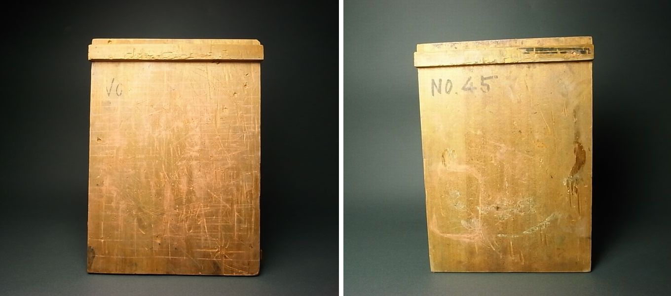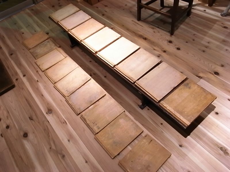 前振りが長かったですが、小学校から出たと思しきこの<木版画作業台>の一口。 田舎の骨董市で競落したときは思わずガッツポーズ作るくらい嬉しかったです。
