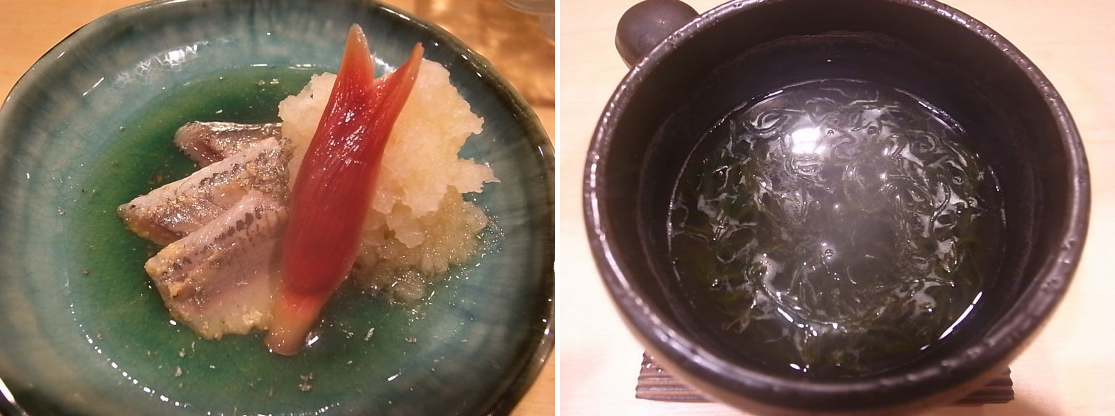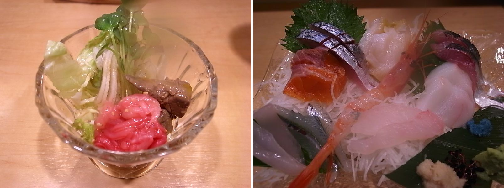 エイのキモなんて食べたの初めてです。 すっかり度肝を抜かれ、威を正してお願いしました。 「すべてオマカセでお願いします!美味しいものを少しづつで構いませんので」 と。