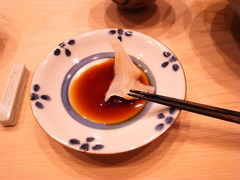 かなりの繁盛振りでなかなか予約できず、この日もまだ三度目の訪問なのですが、 そそられる器で供される品々に、ついつい盃を重ねてしまいます。 「鮨までたどりつけるのか!?」