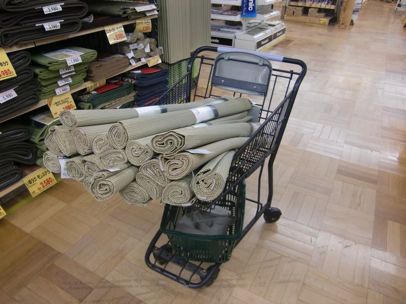 まずは近場のホームセンター。 私は板橋ビバ・ホームにゆきました。 大きいイ草はあった気がするけれど、一畳くらいの小さいのはどうかなぁ?