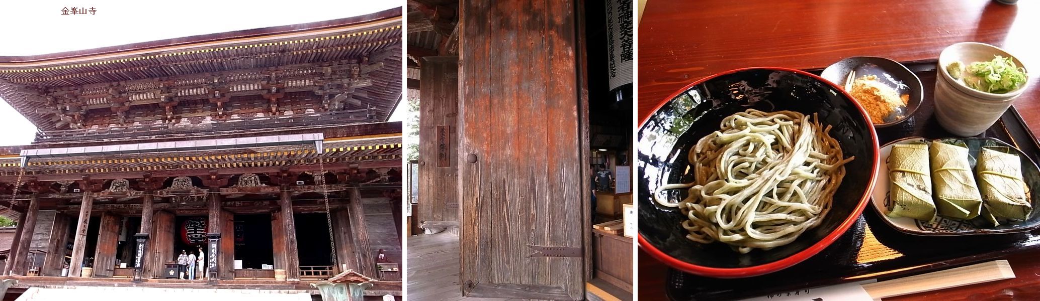 お昼は名物<柿の葉鮨>。 蓬を練りこんだうどんと一緒に。