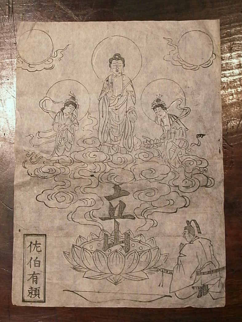 牛玉宝印を思い浮かべますが、こういった阿弥陀三尊形式のお札もあります。