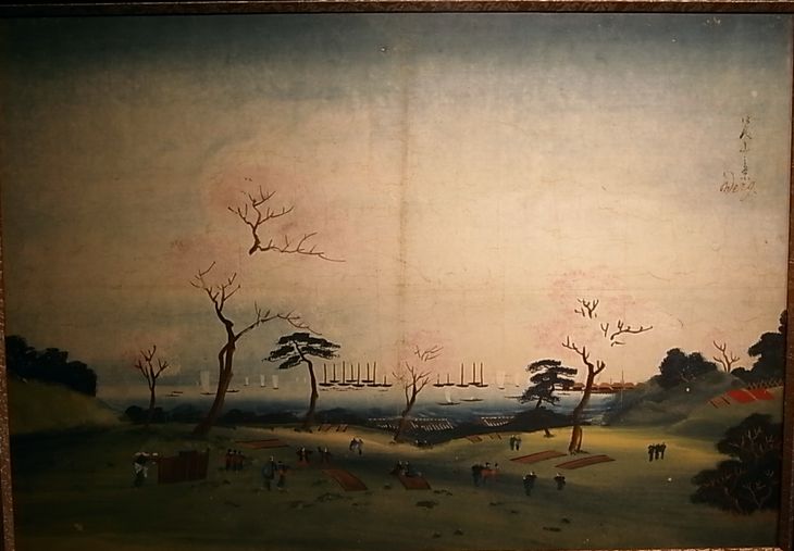 江戸系、上方系、長崎系、と大まかに三系統に分類される泥絵のうち、 なるほど江戸系で大名屋敷を描いたものは、東海道入り口の品川宿で、 帰郷する下級武士江戸土産として売られていたものでしょう。