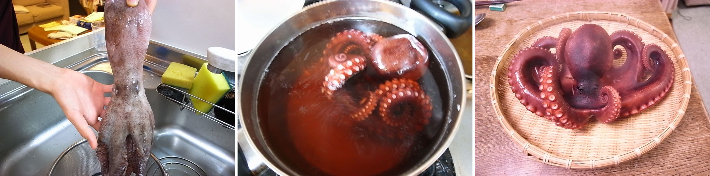 夜半に家に着き、翌日タコ茹で開始。 こんな風になりました。味はまさしく絶品。 もう暫らくモーリタニアのタコは食えない…。