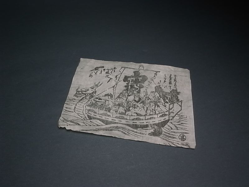 頭にきたけれど、そのままにしておく訳にもゆかず、 その日の夜(つまり元日の夜) 年末ご来店のお客様に配った、デッドストックの宝船の刷り物を 家族全員に渡す。