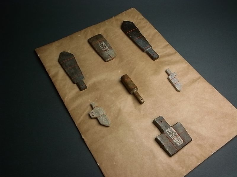刀子はめずらしくもないですが、真ん中の砧形のモノは初見。