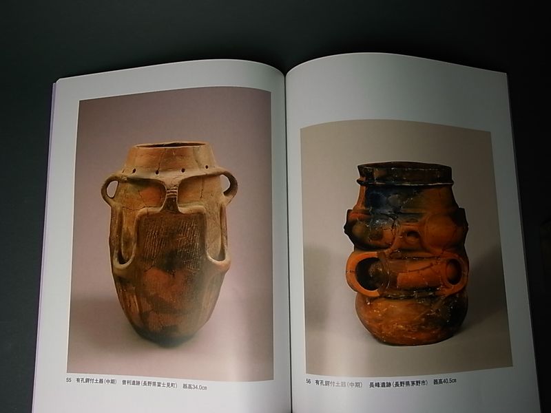 縄文時代の中期に出現した、<有孔鍔付土器ゆうこうつばつきどき> と呼ばれる変わった土器の一群があります。 壺形、または樽形で胴に穿かれた孔の下に鍔状の突起が廻ります。 不思議な形で今もってどのように使われたものか決定的な説は出ていません。