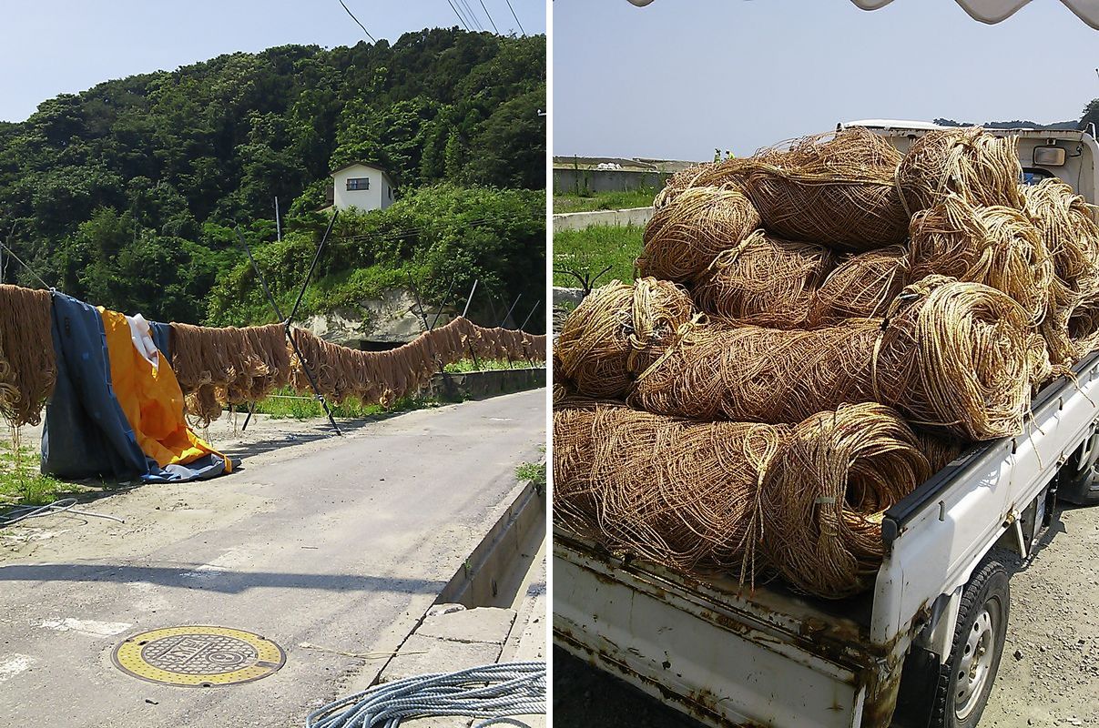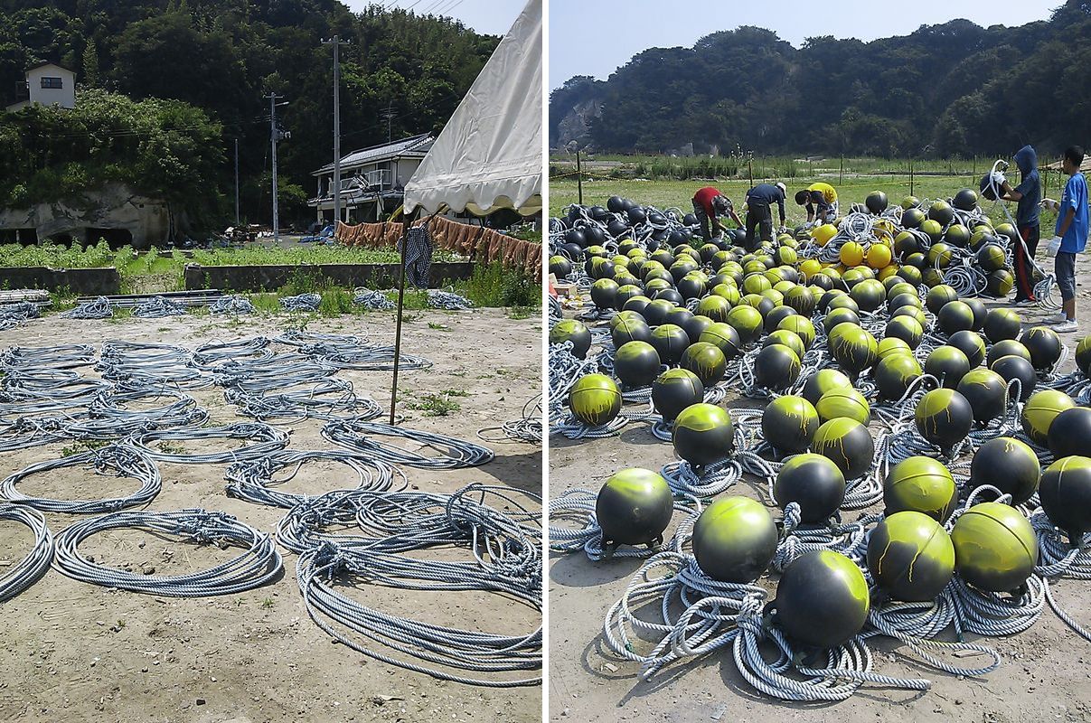 今年になり、「一緒に行ってくれないか」と相談を受けた時は、嬉しくもあり、また息子の成長を逞しくも思いました。(親バカでスミマセン!) そして宮城県へのボランティアバスツアー。 現地に着かないと、どこで働くか判らないのですが、我々は奥松島の月浜地区へ。 以前は海苔の養殖で生計を立てていた場所です。 ドロドロになりながらの土砂かき等を想像してましたので、 海苔養殖で使う、網やロープ、ブイなどの制作・調整はちょっと肩透かしを食ったようでもありました。 が、炎天下の中、出来うる限りのことはやれたのではないかと思っております。