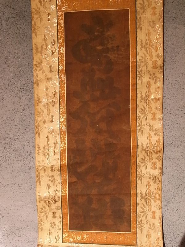 何度も洗われ墨色も薄くなり、表具替えの度に左右を狭められ。 それでもこうして大事に残る、という事が信仰の篤さ。
