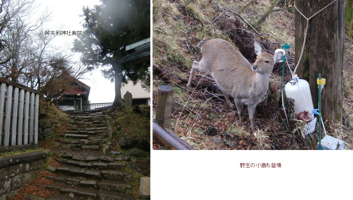 ここからが本番。ガレ地のような天然石段と呼ぶのか、とにかく心の中でキツイキツイと文句を言いながら登る。 やっと山頂。奥ノ院。 風、雪除けか神殿にシャッター。 暖かいカレーを食す。野菜ゴロゴロバーモントカレー。でも美味し。