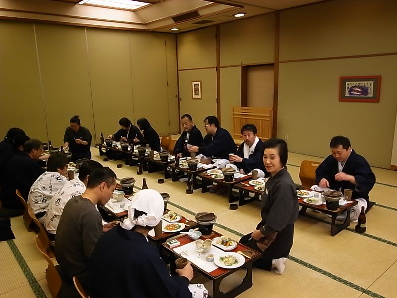 無事仕事も終わり、温泉のあとはお待ちかねの宴会。