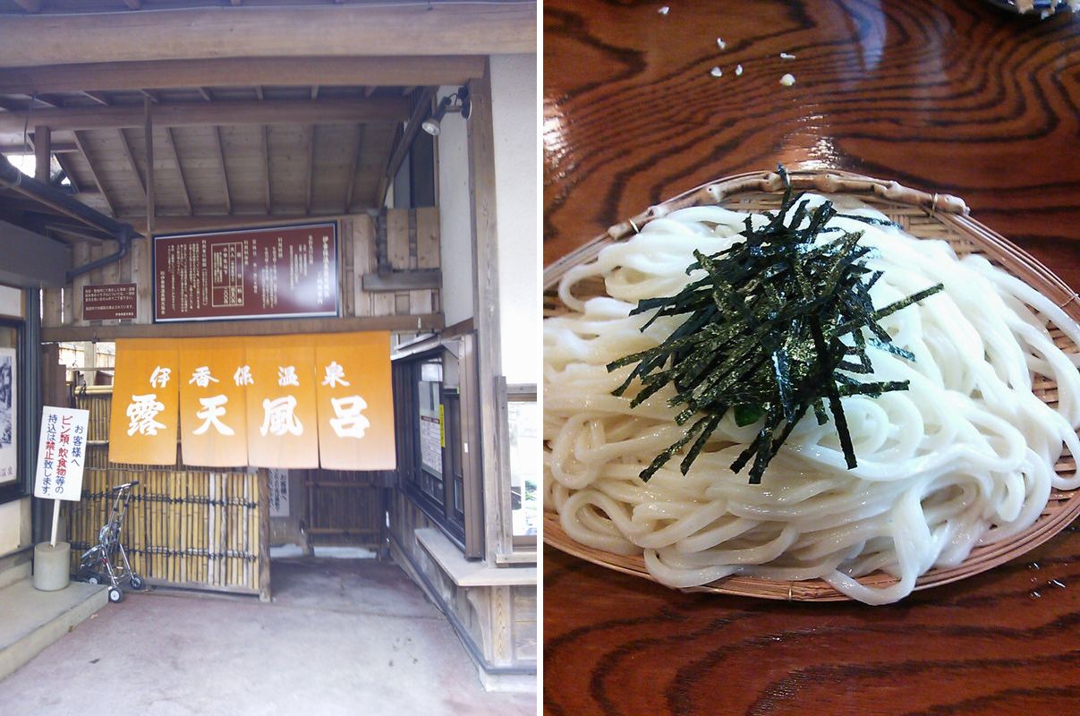 上っているうちに雪も舞ってきて、露天風呂に入るのも危険を感じましたが、そこは勢いでザブン、と。 厳選噴出孔近くだけあってとてもいい湯。 白く美しい、水沢うどんもおいしくいただきました。(舞茸の天ぷらが尚よかったな)