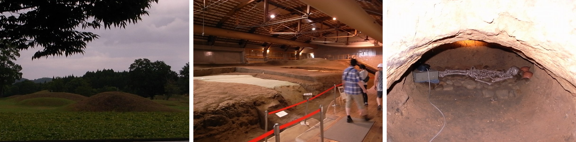 幾つかの古墳は覆屋の下、見学もできます。 地元特有の地下式横穴墓の発掘現場を見てみると、 そこには骸骨が横たわっています(勿論!レプリカでしょうけど…怖っ)