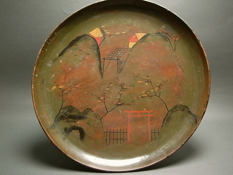 仲間が図替わり五枚で買った漆絵の盆のうち、鳥居がある一枚を分けて貰いました。 久しぶりに見るいい漆絵の盆。 瀬良陽介氏の『盆百選』にも出ていますが、この緑色を地にした盆はどれもなんだかひと味違う。