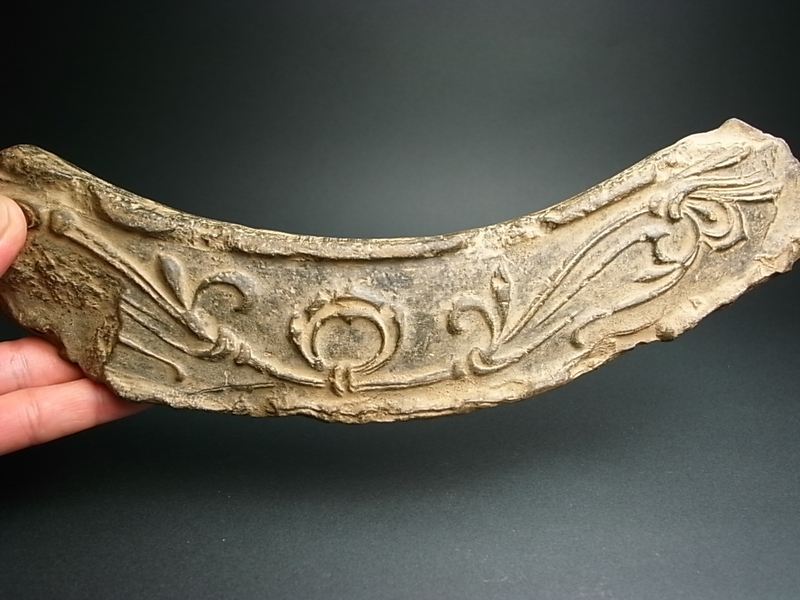 こんな画像を見るとドキッ!としてしまうのでないでしょうか。 法隆寺の軒平瓦。 若草伽藍の手彫りのものには敵わないけれど、 それにつづく均整忍冬唐草文様。 八弁の複弁軒丸瓦と組み合わされば、いわゆる<法隆寺式軒瓦>としてコレクター垂涎の的、となるのであります。