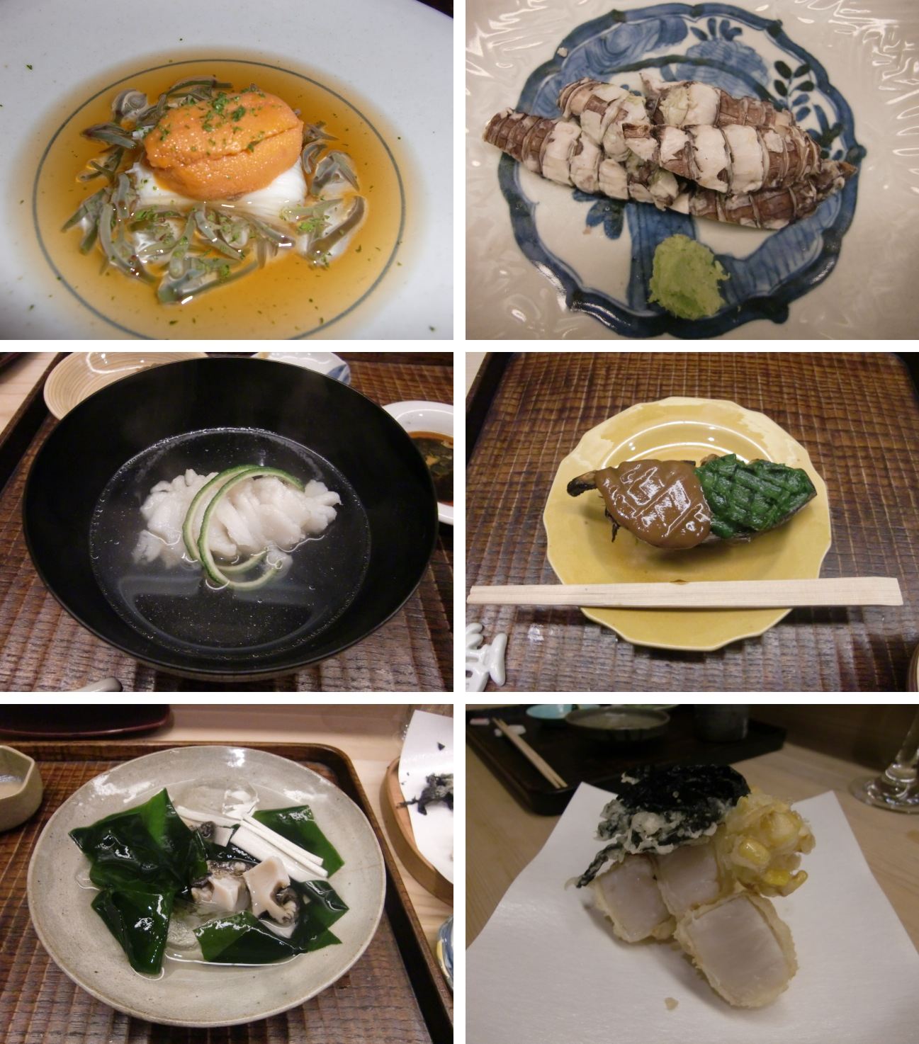 雲丹じゅんさい、蝦蛄、アイナメの椀物に茄子田楽。