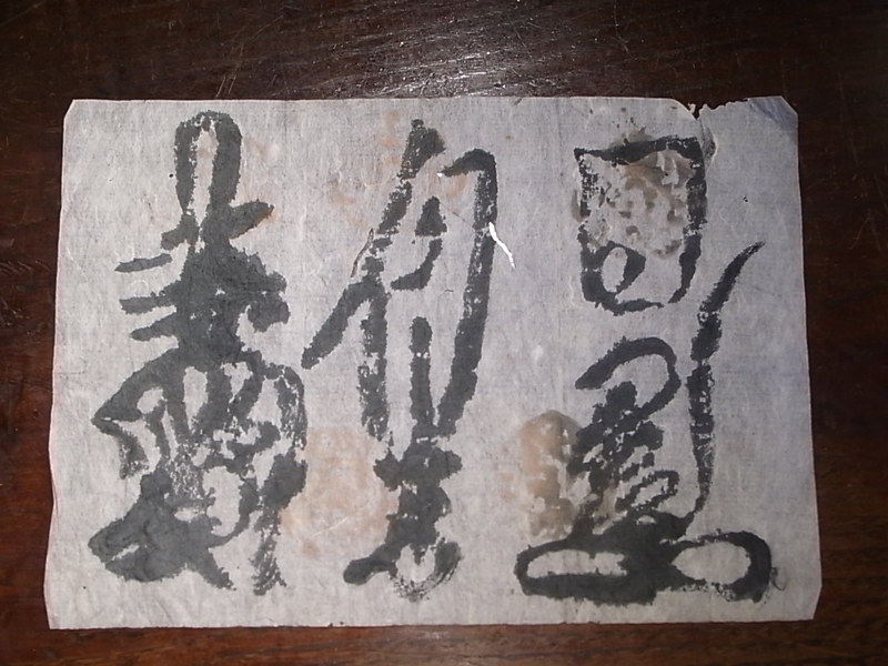 @ 牛玉荒澤堂宝印 場所不明(おそらく羽黒かな) 牛玉が利剣で表されているところがイイッ。宝印も雄渾でスバラシイ! A 〇泉堂宝印 東北で出る〜泉堂、どなたかお教えください。牛玉の書体は見覚えがあるのだが。 B これも皆で知恵をだし合って、一回辿りついたようだったが、よく分からず。ご教示下さい。