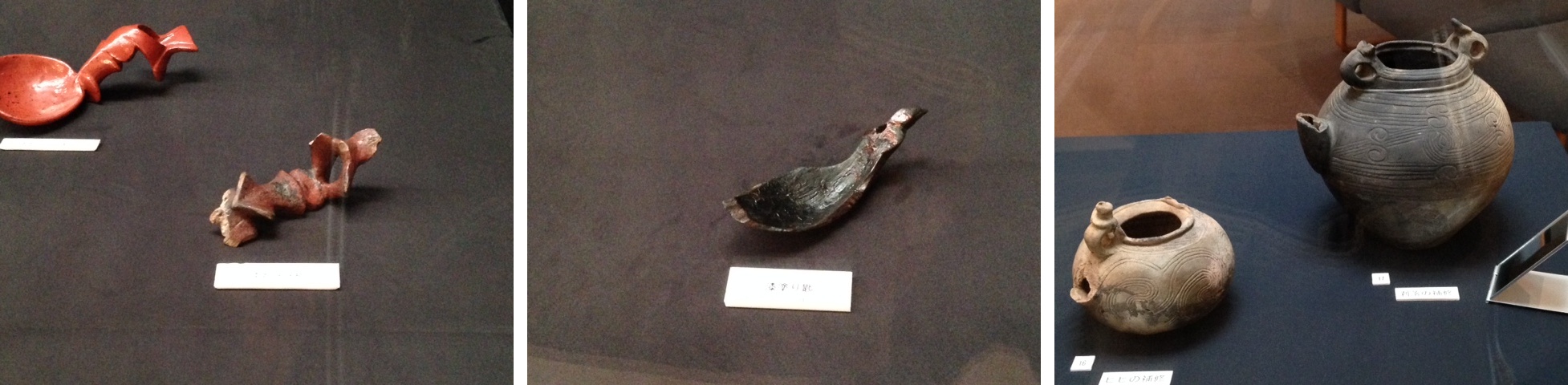 さて、その八国山の南面には<北川>と呼ばれるなかなかの川が流れ、 そこに低湿地遺跡の「下宅部遺跡」がある。 住居跡などではなく、加工場だったらしく漆の採取関連物や丸木舟などの木製品が腐らず出土した。 折しも『縄文の漆』展が開催中。