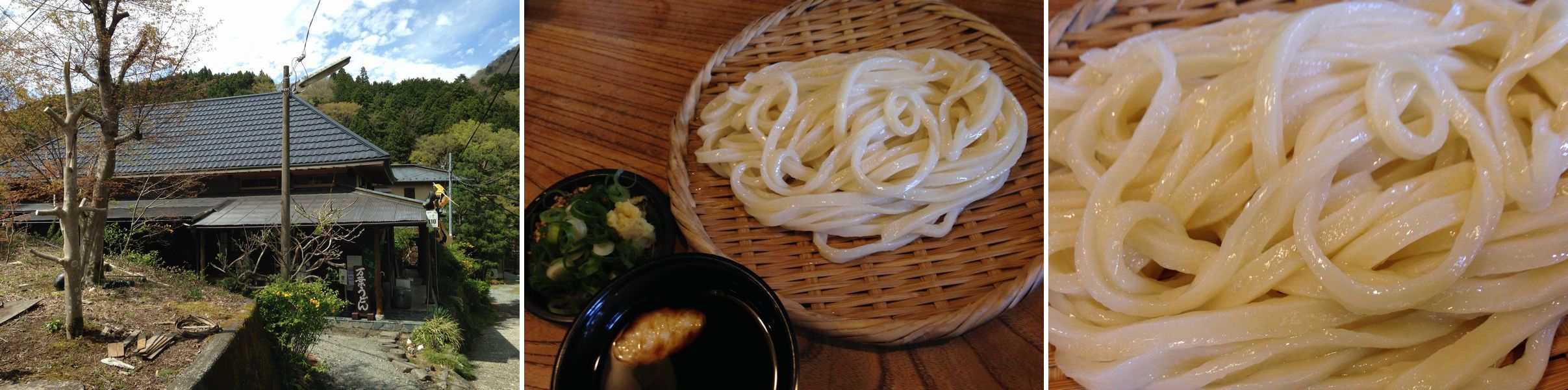 金太郎が生まれたとの伝説がある地蔵堂ちかくにそのうどん屋はありました。 山家をそのまま使っているような佇まい。 ネットでは平日でも30分待ちはあたりまえ、とか駐車場に入るまでで1時間だとか、耳を疑う情報が溢れていましたが、 行ってみればなんてことなく、貸切り状態でした。 その所為か、ちょっとうどんが伸びていたような…きれいなうどんなのに勿体なかった。 もっとおいしいはず、とおもいながら啜っておりました。 あっという間に完食!おかわりは100円!
