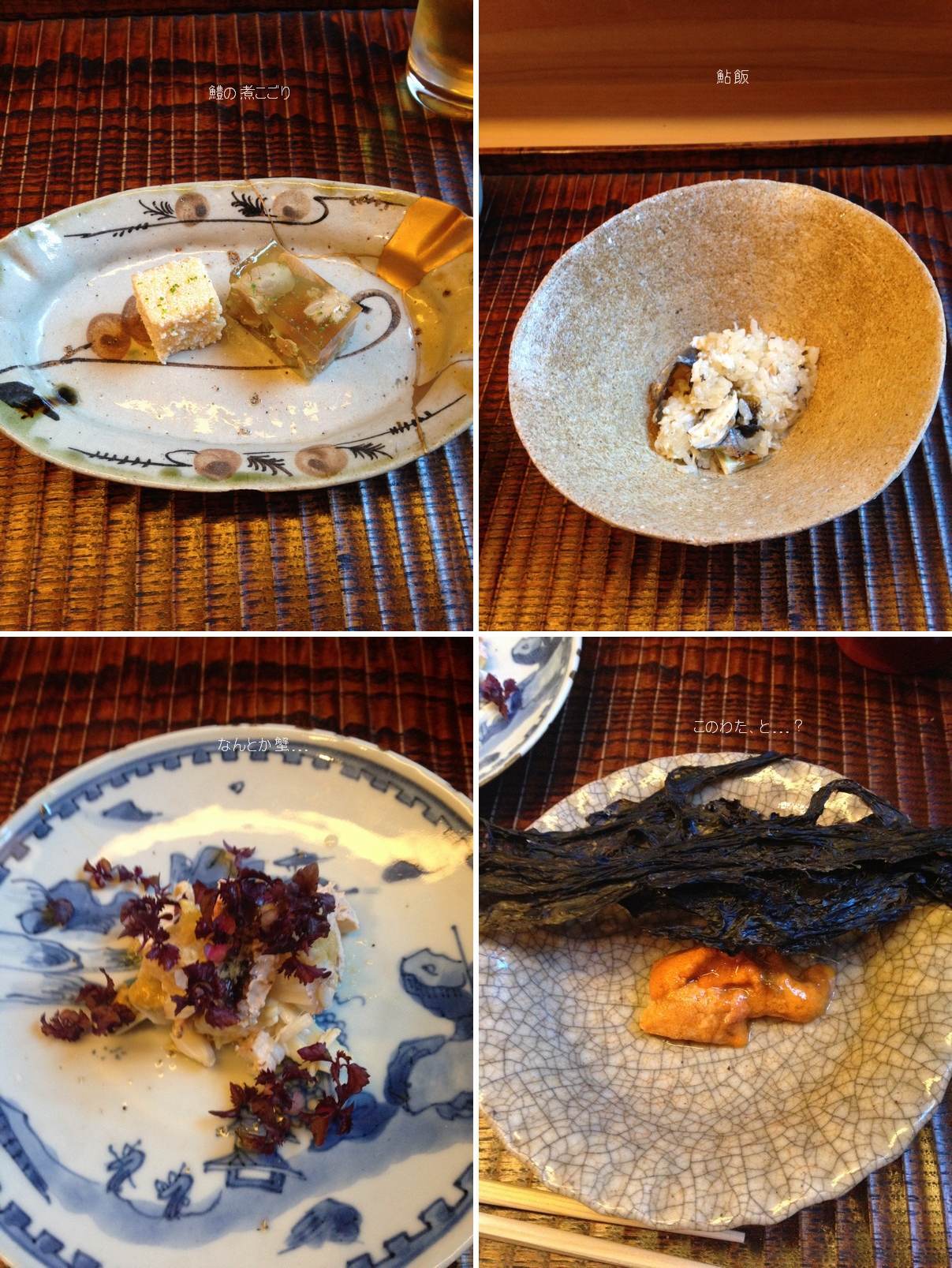 まずは、前乗りした京都編。 といっても大した話はありません。 わたくしと高橋亮さんの素乃會二人が、京都でお世話になる方々に挨拶をして、 (もうひとりの古童さんは奥方と車で上洛中) その後、嵯峨野の<おきな>さんで木工作家の佃眞吾さんと合流して、 美味しいモノを食べた、ということ。 (おきなさんで使われているこの鎬の膳は全て佃さんの作ったもの)