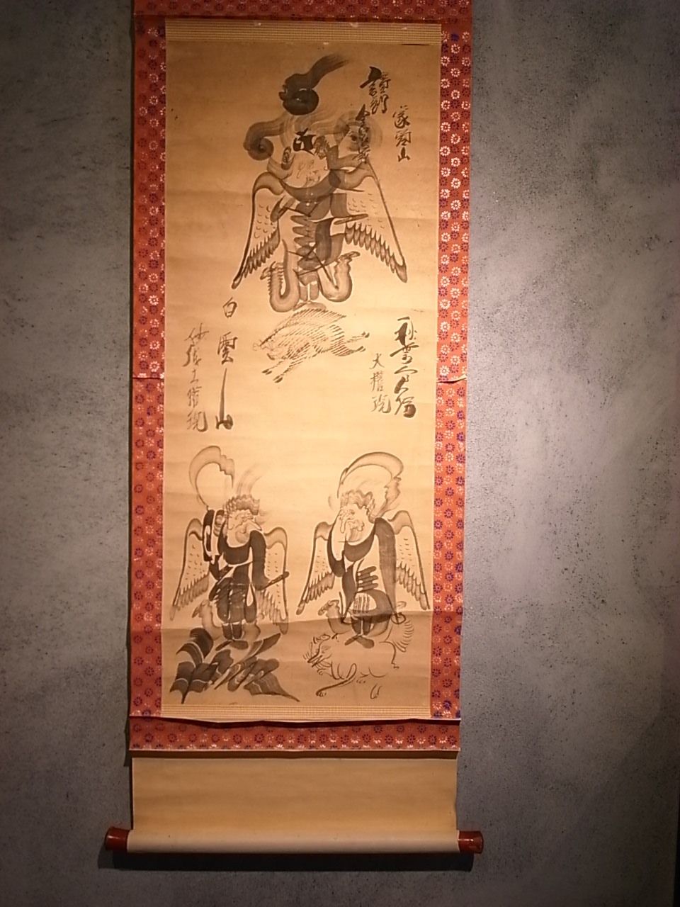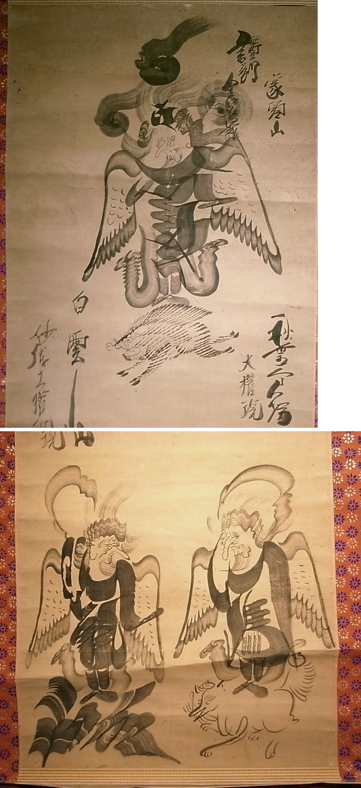 こんな三社託宣、(天照大神・八幡大菩薩・春日大明神)もあれば、 こちらは珍品、讃岐象頭山、白雲山妙高大権現・秋葉山大権現と天狗様の三並び。