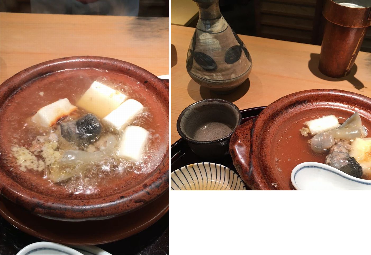 うろたえていたら、よく行くもう一件の店を取ってくれた。 いつも預けておられる徳利を交換するとのことで、 今宵は鶏龍山徳利のデビュウ戦。 薬草葉で無疵、サイズもぴったりのザ・鶏龍山。これはしっかり撮らなければ!