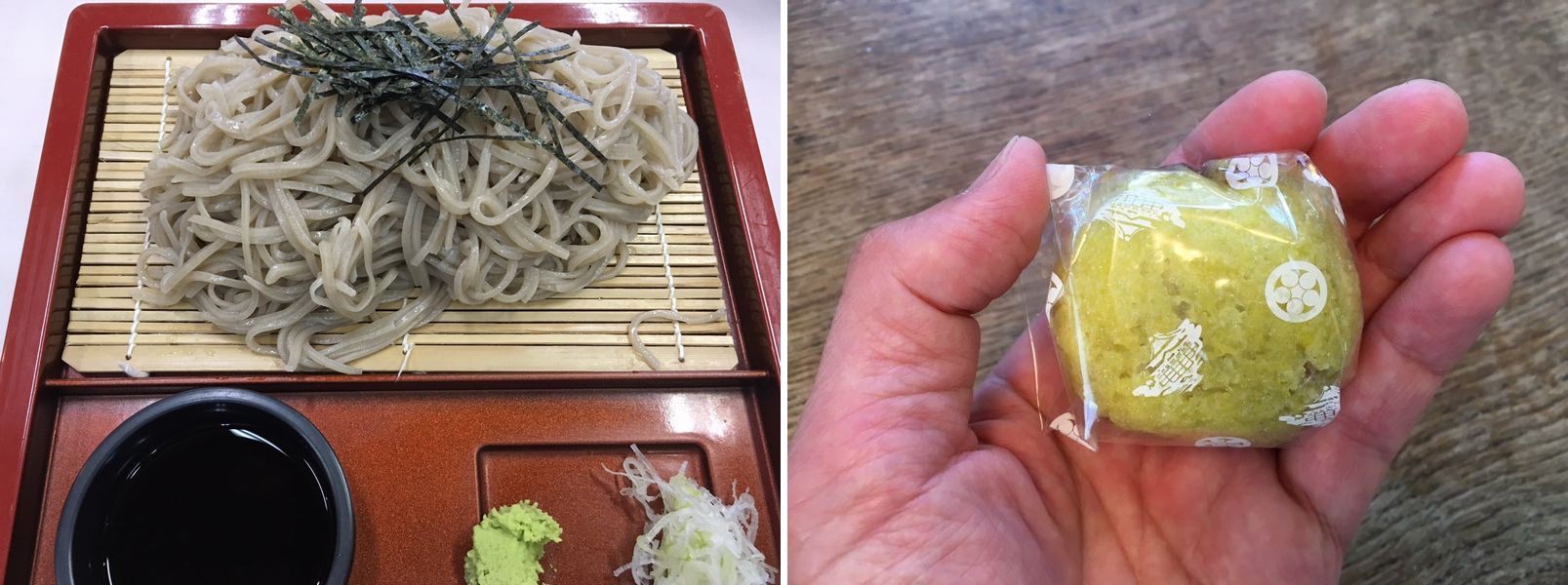 町をあげての特産品開発のようで、<博士そば>。 博士山の麓でとれるそば粉100%でつくったざるそば。 汁が甘いのはお国柄なんでしょうね。 念願のあわ饅頭、六店ほどで作っていますが、今回は小池菓子舗さんにしました。 これは文句なく美味しー!