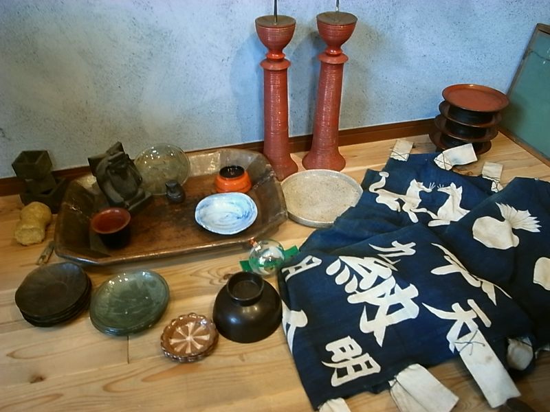 夜噺ができそうな燭台や、お稲荷さんの幟幡。