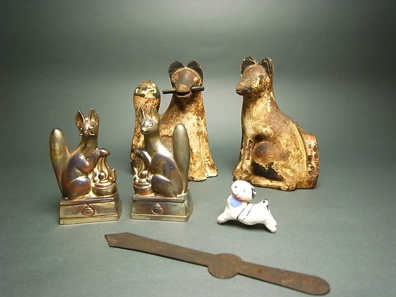もう一枚は動物特集。 お稲荷さん二種、ひとつはもう煤けちゃって何焼きかわからぬ土人形、でもいい味。 金属のはちょい古。型モノです。