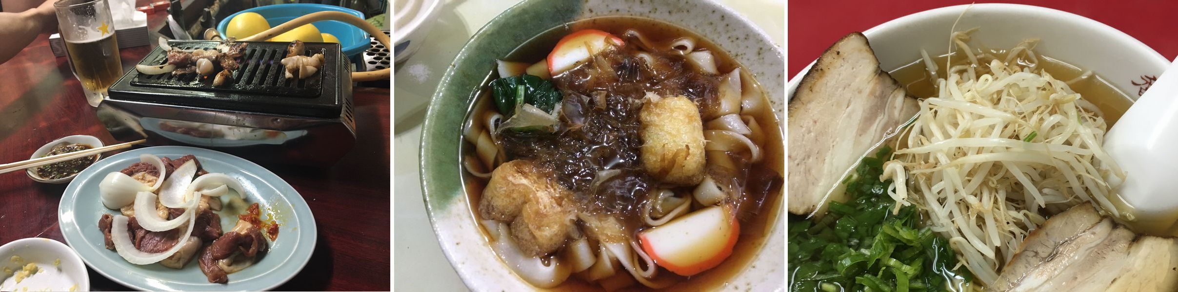 二次会は<とんちゃん力>で名物サガリを焼いて食べ、食堂丸福できしめん、小休止。 タクシー飛ばして御園座ちかくの<香蘭園>で焼餃子に水餃子、〆にはいかにも関西風のこのラーメン。