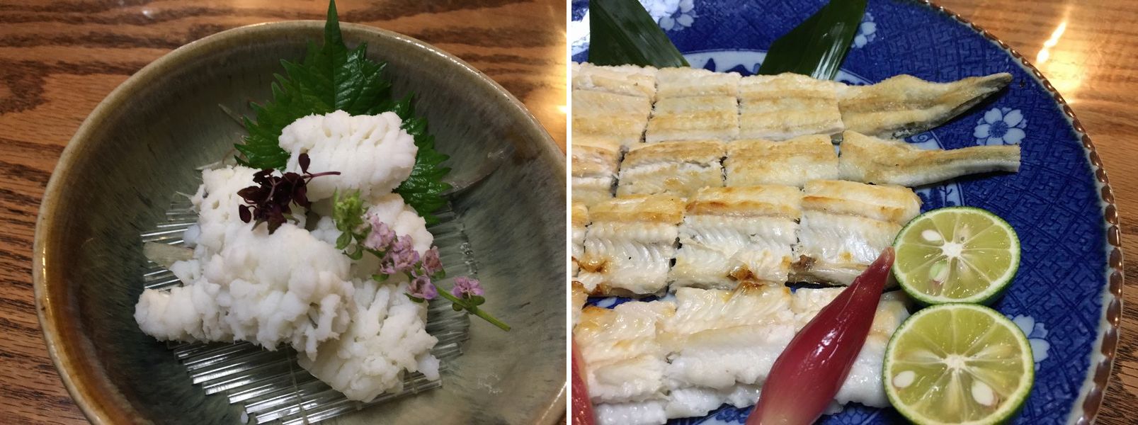 前置きが長かったですけれど、一杯入ればいつもと同じ。 京都に負けないぞー、と鱧。 穴子の白焼き。 〆鯖、鰹、白身の刺身。