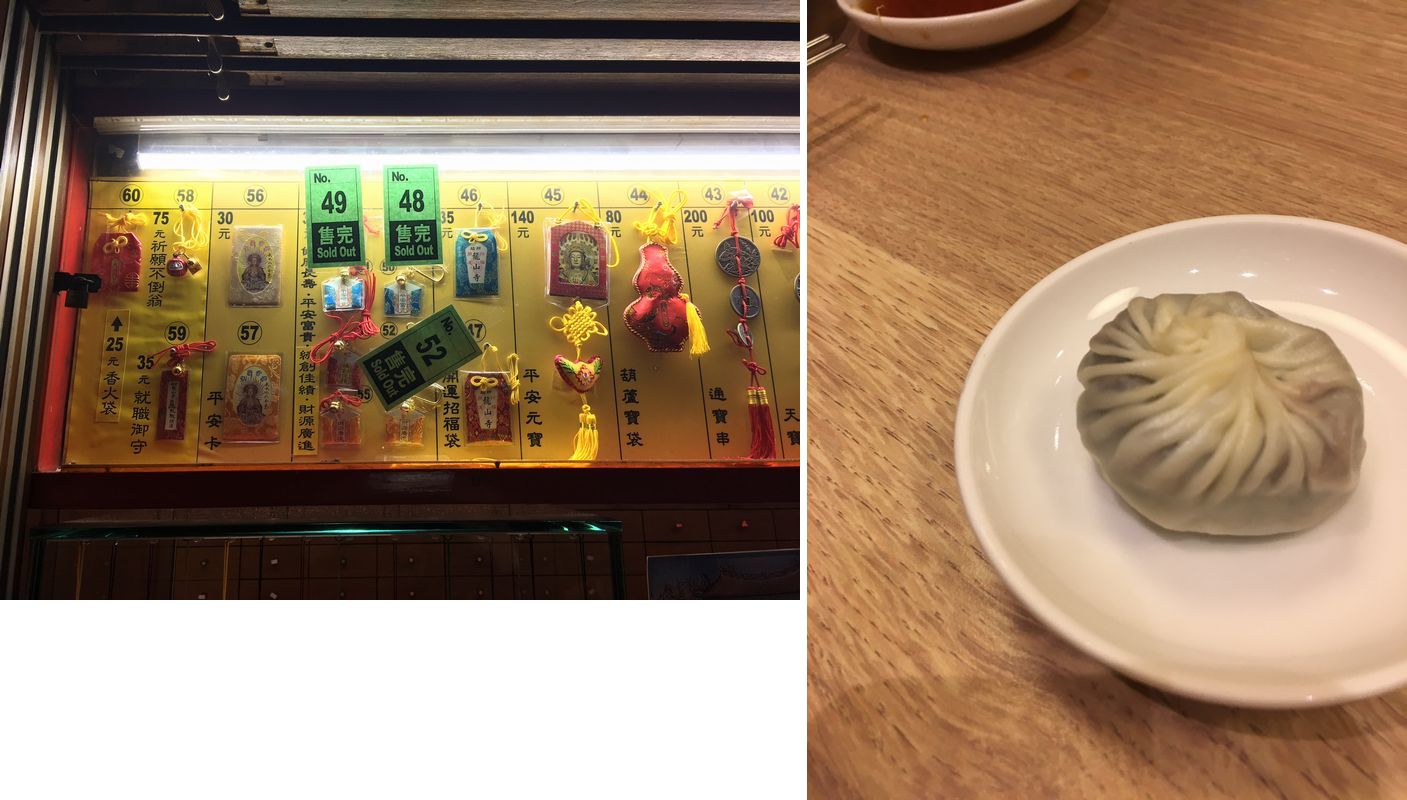 まずは観光客も沢山訪れる「龍山寺」。 建物にお札らしきものは貼っておらず、お札も売っていない。 お守りみたいなものがあるのみ。それも日本からの影響で作りました〜みたいな感じのお守り。 もともとは無かったんじゃないかな?ちょっと残念。 地下鉄(MRT)で3駅程足を延ばし、小龍包の<鼎泰豊>に登ってみました。 料理の出てくるスピードが速く、気がつくと餡子入りの甘いものしか残っていません。