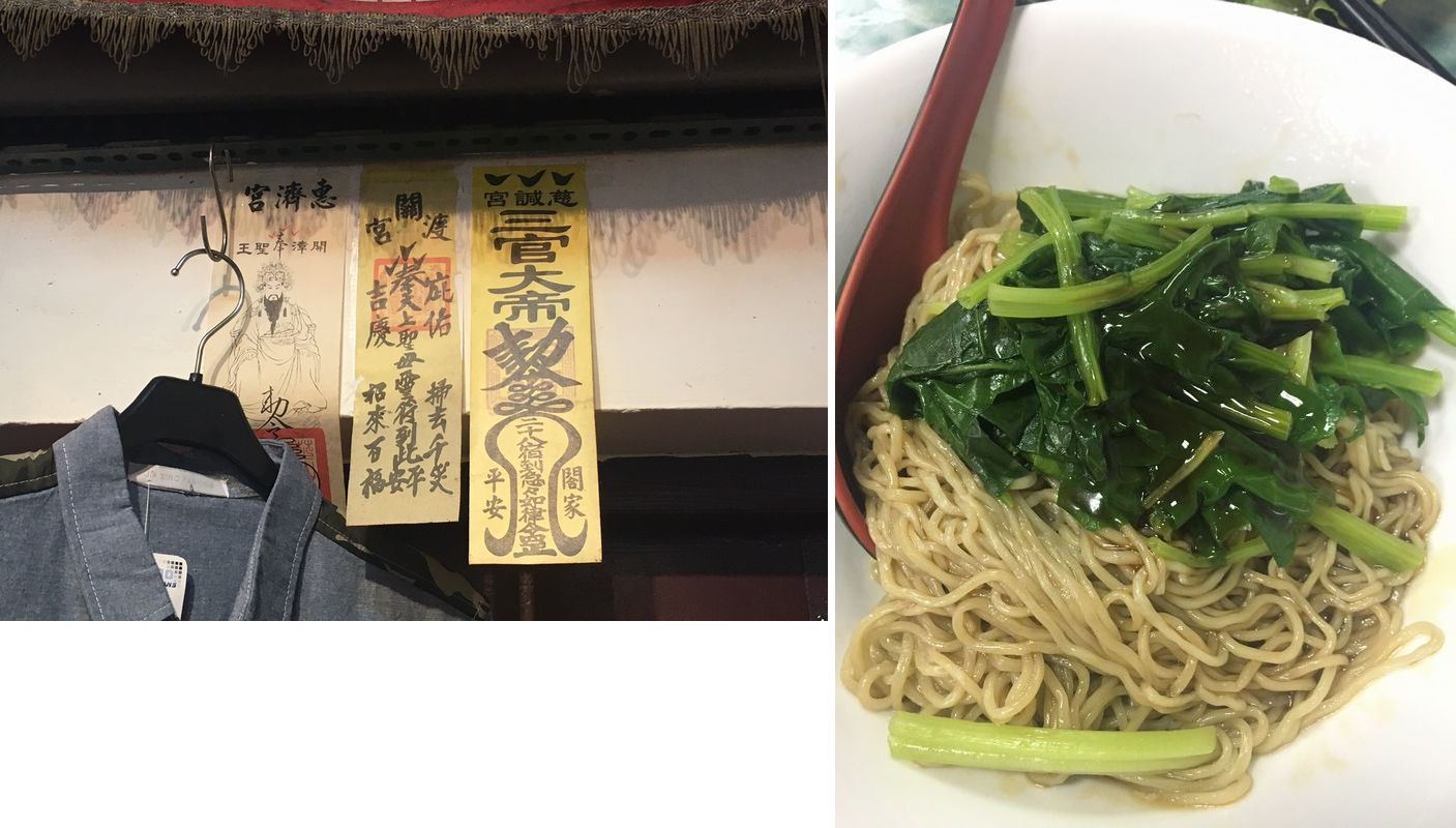 次には夜市で賑わう士林の街を探索します。 すると、一軒だけ、ただ一軒の洋服屋の軒先にだけ護符が貼ってありました。 まぁ、印刷っぽいんですが。 派手な色もあり、仏・道、区別しづらいような、しやすいような。ですが仔細にみると、 「三官大帝」は天・地・水を司る道教の神々の監督だとか。 「恵済宮」は同じ士林にあるこれも道教(おそらく)のお宮さん。 と道教色が強かったです。 この街の片隅、<越南祥記美食>で頼んだ排骨撈麺(95元=380円くらい)は忘れられない美味しさでした。 (このあと別皿で出てきた排骨はちょっと残念でしたが、この和えて食べる汁無し麺は実に良かったです)
