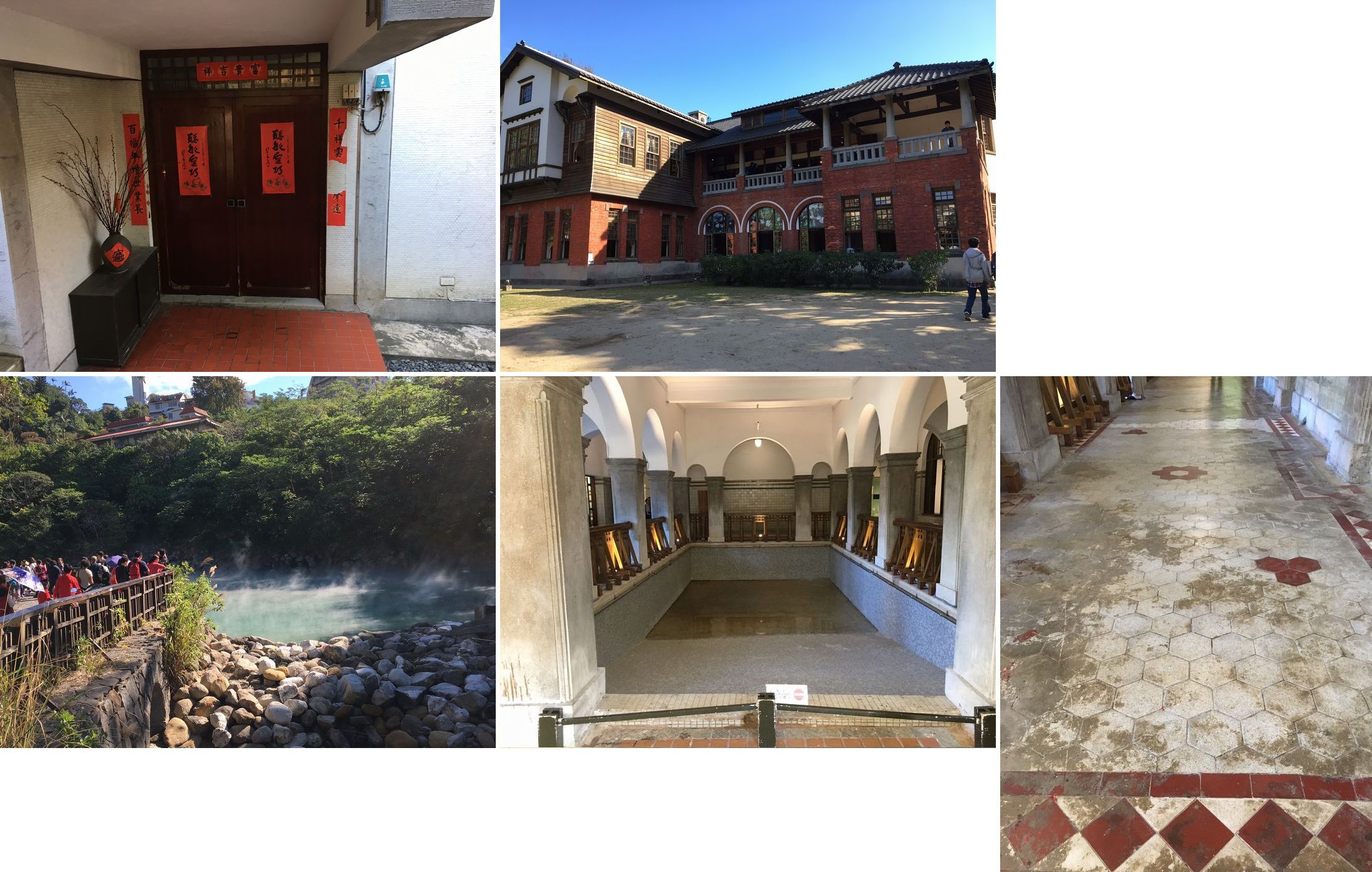 温泉もあるんです、台湾には。 玄関にこれでもか!というくらい貼られた赤い札。 地獄谷すらある「北投」の住宅街での一枚。 「北投」は統治時に日本人が作った温泉です。 今も建つ和洋折衷の「洋館」は公共浴場として1913年、森山松之助により設計されたもの。 タイルも往時のまま。