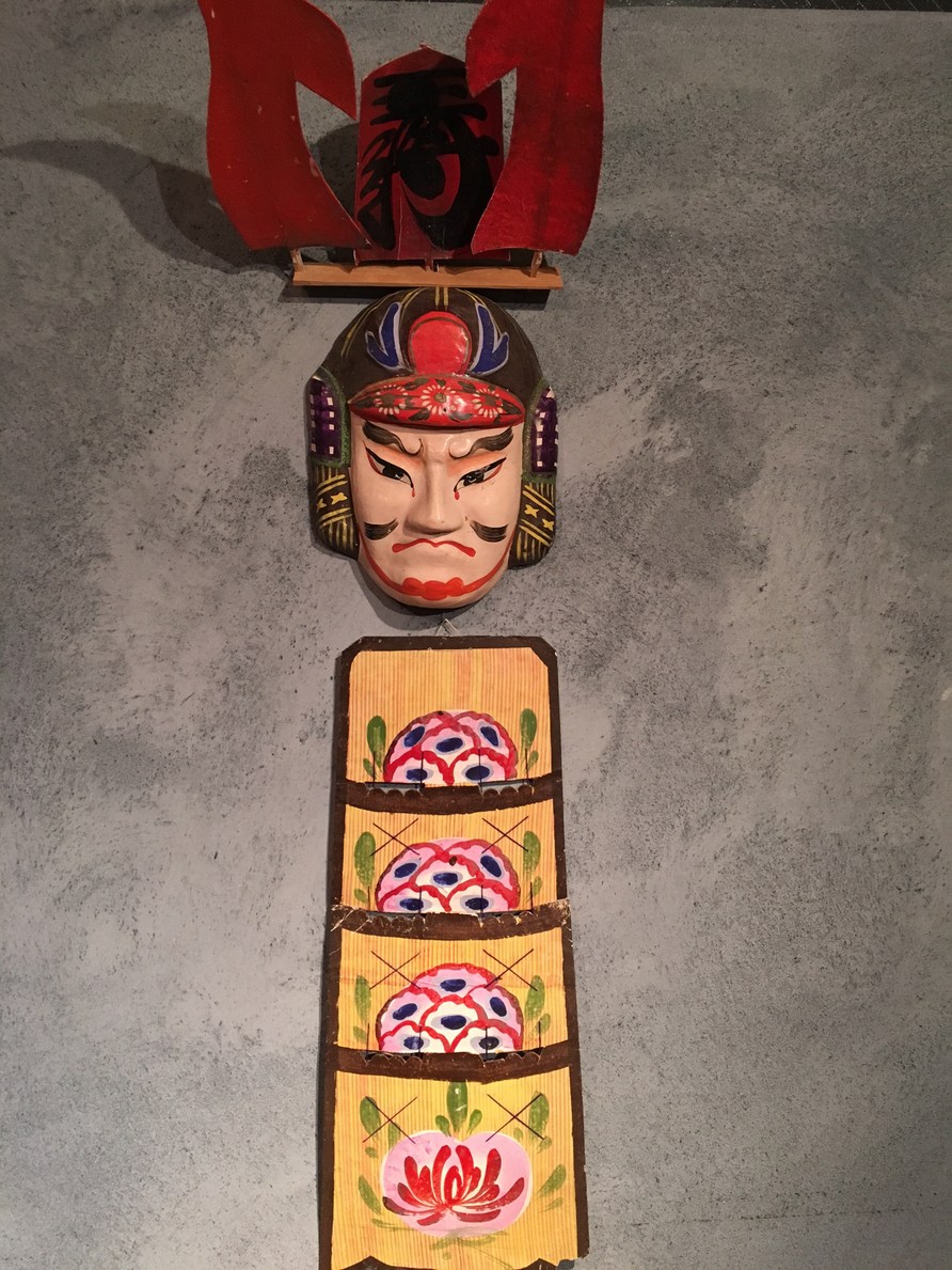 もうひとつは「甲州かなかんぶつ(おかぶと)」 端午の節句に飾られた張子の面と紙細工の鎧。 明治には廃れた風俗と先の『やまなしの民俗』にはあります。 昭和三十年頃、家屋の建替えなどにともない大量に放出されたようです。 今回入手できたのも、その頃出廻ったものでしょうか。