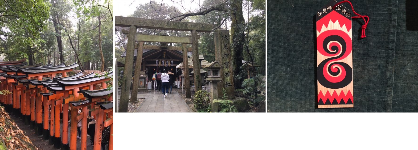 ここで、どういうわけか平城宮から出土した<隼人の盾>をモチーフにしたお守りを出していて、 それともうひとつ、<火の用慎>札も個性的でしたので、できれば両方を頂ければと、満員の千本鳥居を後にして脇道を登ってきたのです。