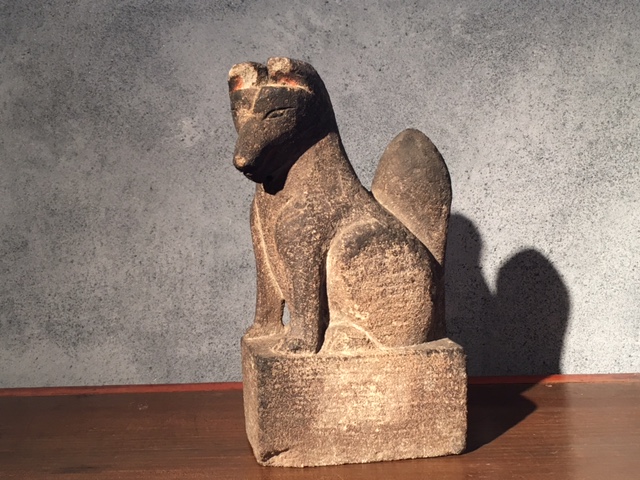 石のお狐さん。お顔に朱が入っており、表情も実にイイ。