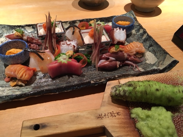 鯛の白子から昆布締め、明石の蛸、赤貝・ホタルイカ、大間の鮪、北海道の雲丹と美味しいとこてんこ盛り。