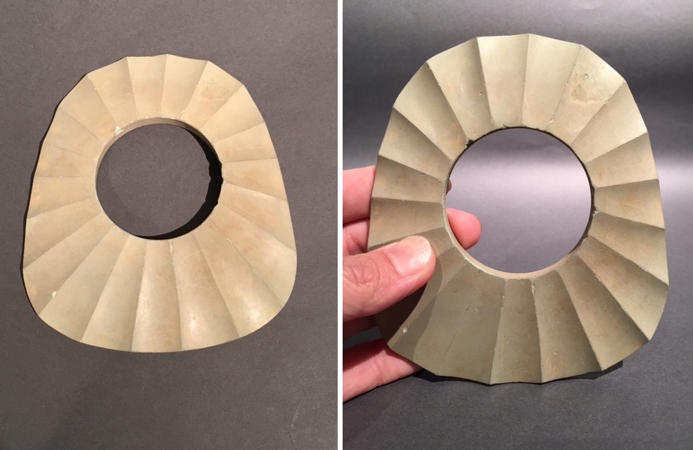 先日仕入れた『車輪石』、古墳時代の腕輪型石製品です。 弥生時代の貝輪から発展、というより貝輪を模して石で作られたモノ。