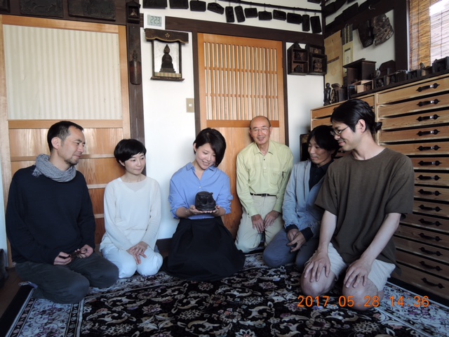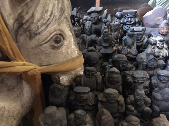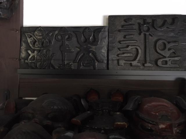 一日、年若の友人ふた組とともに埼玉の奥に(失礼!)獅子頭・馬板の蒐集で名高い岸和雄氏を訪ねてまいりました。 久方ぶりに拝見する黒いモノたちの作り出す雰囲気は圧巻で、なにより以前よりも<圧力>が増している! 当然、初めての若い男女は声もなく、ただただ感歎いたすのみ。 「死蔵はイヤ」と常に口にされる岸さんらしく、コレクションは綺麗に展示せられ、 並んでいる黒モノたちも嬉しそう。