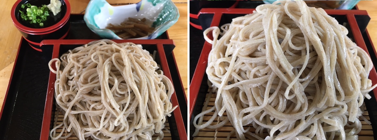 道すがら、曲家の集落である前沢地区(国重要伝統的建造物群保存地域) で火伏せの男根や、先日の資料館にあったヤバネと呼ばれるこれも火除のマジナイものを見たのち、 いせや食堂で「裁ちそば」と対面。 ソバも自分のところで栽培し、挽いて打って、出来る分だけ出しておられるのだそう。 見目もうるわしいその蕎麦は、鮮烈な水の香り。 目の前ですりおろしてくれた本わさびを、途中ちょいと蕎麦に乗せて食すのもいいアクセント。 大盛りにしておいて良かった。
