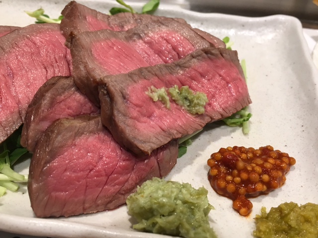 名古屋で大人気の焼肉屋の姉妹店ということで、普段は和食党のわたくしも楽しみに(日本酒も充実していると聞いていたので) 希少部位、赤身の塊など結構ガッツリ呑み食いする。 特にミノが特筆モノの美味しさ。
