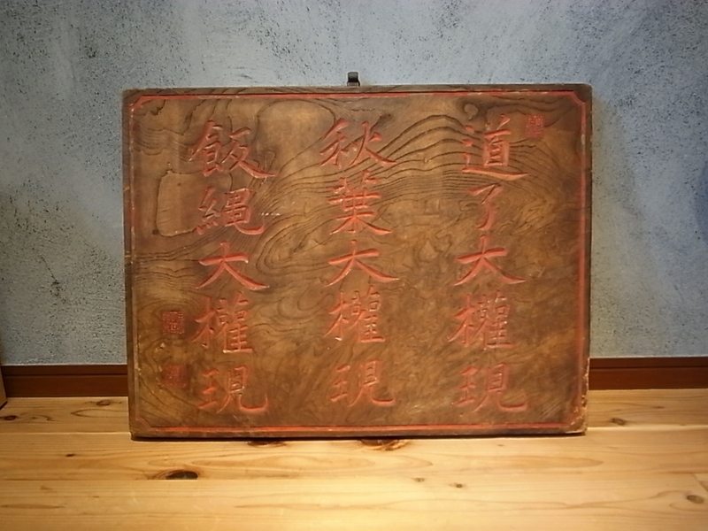 欅の大きな一枚板に「飯綱大権現」「秋葉大権現」「道了大権現」と 名高い天狗様お三方の名を彫り込んだものを買った。