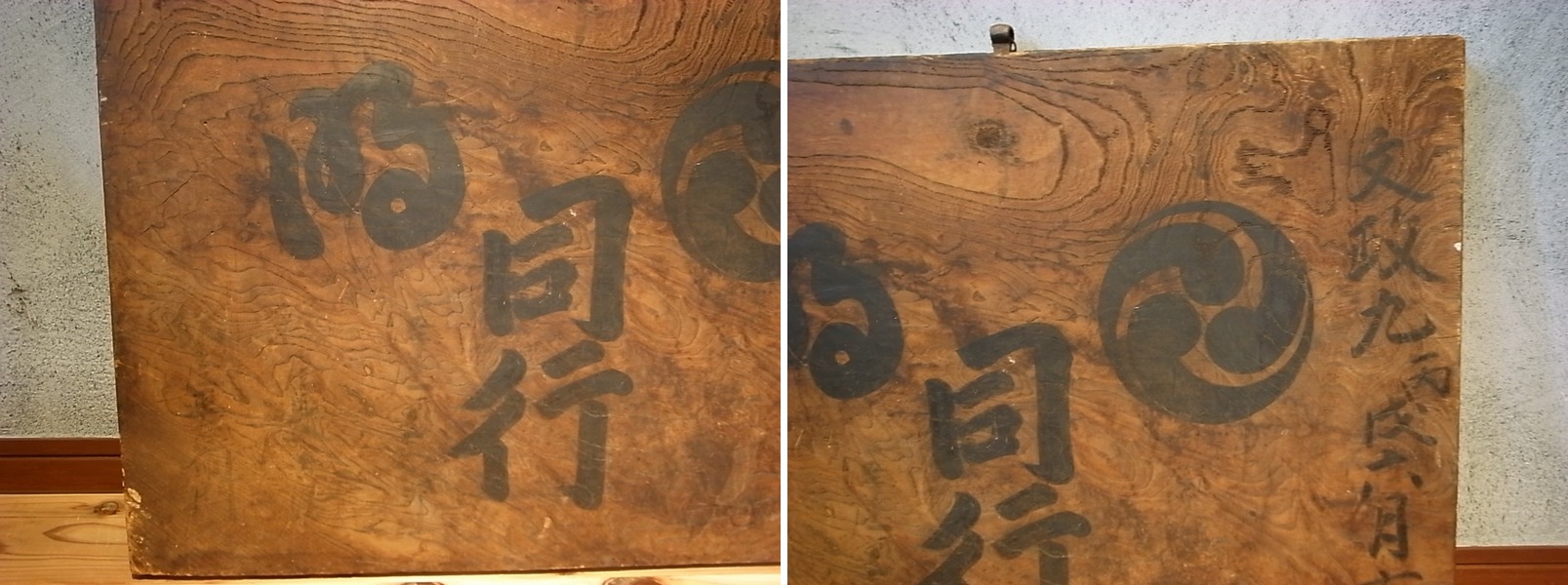 裏には文政九年の墨書。同行とあり、上に方には御神前とも書いてある。 左下には奉納者の名前。 天狗講のような集まりで奉納したものなのかと推察する。